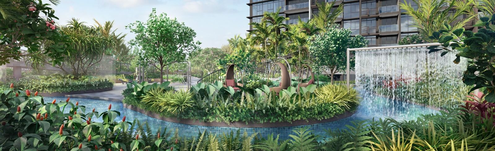 Inspired by the scenery of Jurong Lake Gardens, the landscape introduce unique elements of the park into this project.